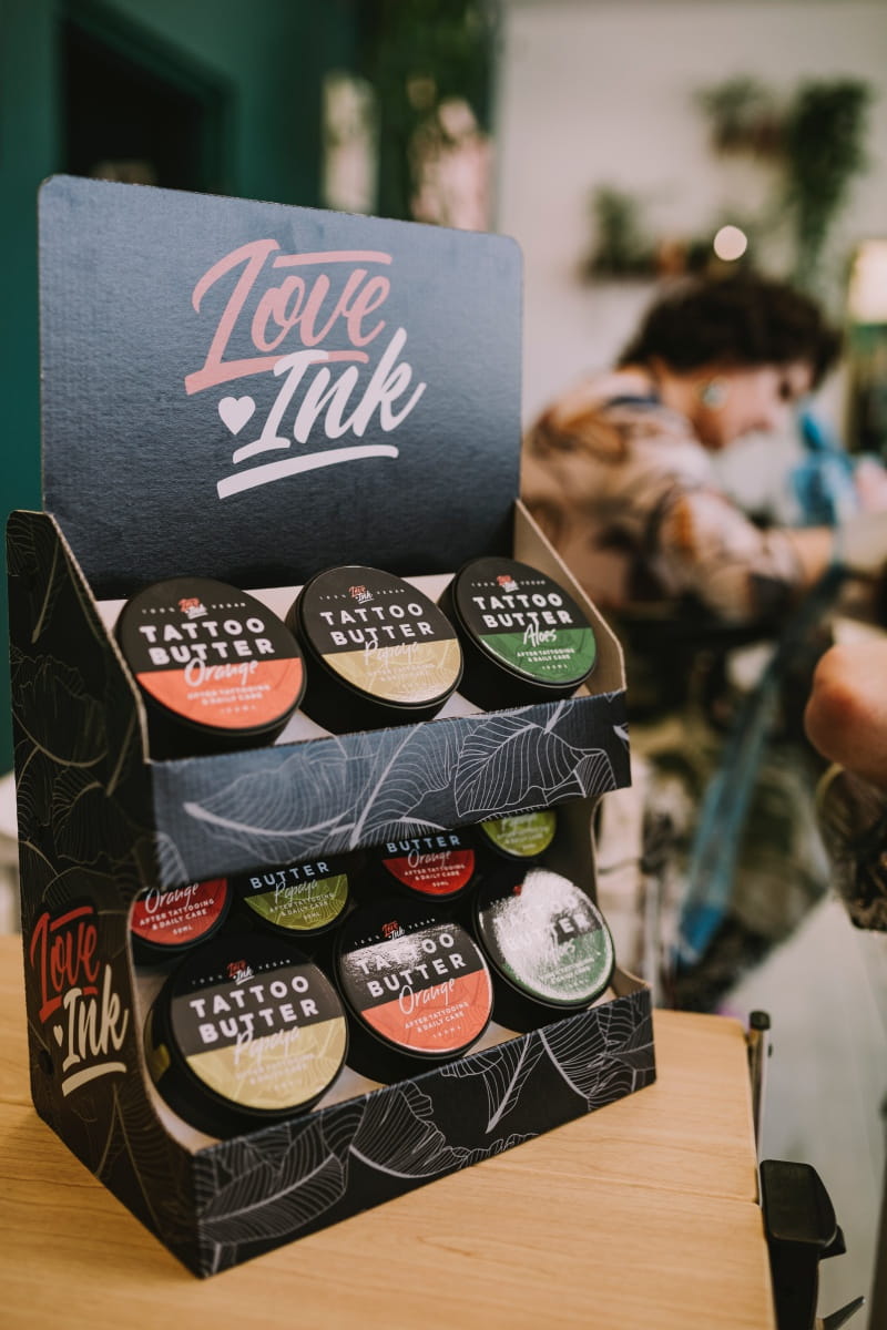 Ekspozytor LOVEINK pozwoli Ci na estetyczne ukazanie produktów w twoim studiu tatuażu bądź sklepie.